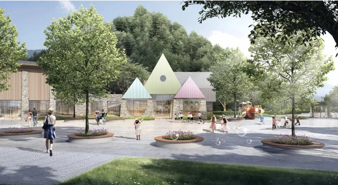 本项目是由文化礼堂、幼儿园、村民食堂、医疗站、邻里中心等组成的配套建筑群,总体量约1400方。其中文化礼堂370方,村民食堂、茶室、邻里中心等435方,医疗站205方,幼儿园380方。同时动工的三期星空帐篷民宿,建成后将进一步为淳安旅游经济添砖加瓦。