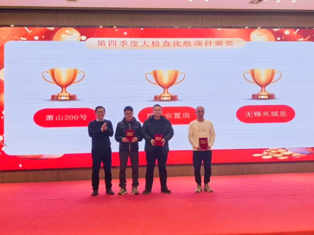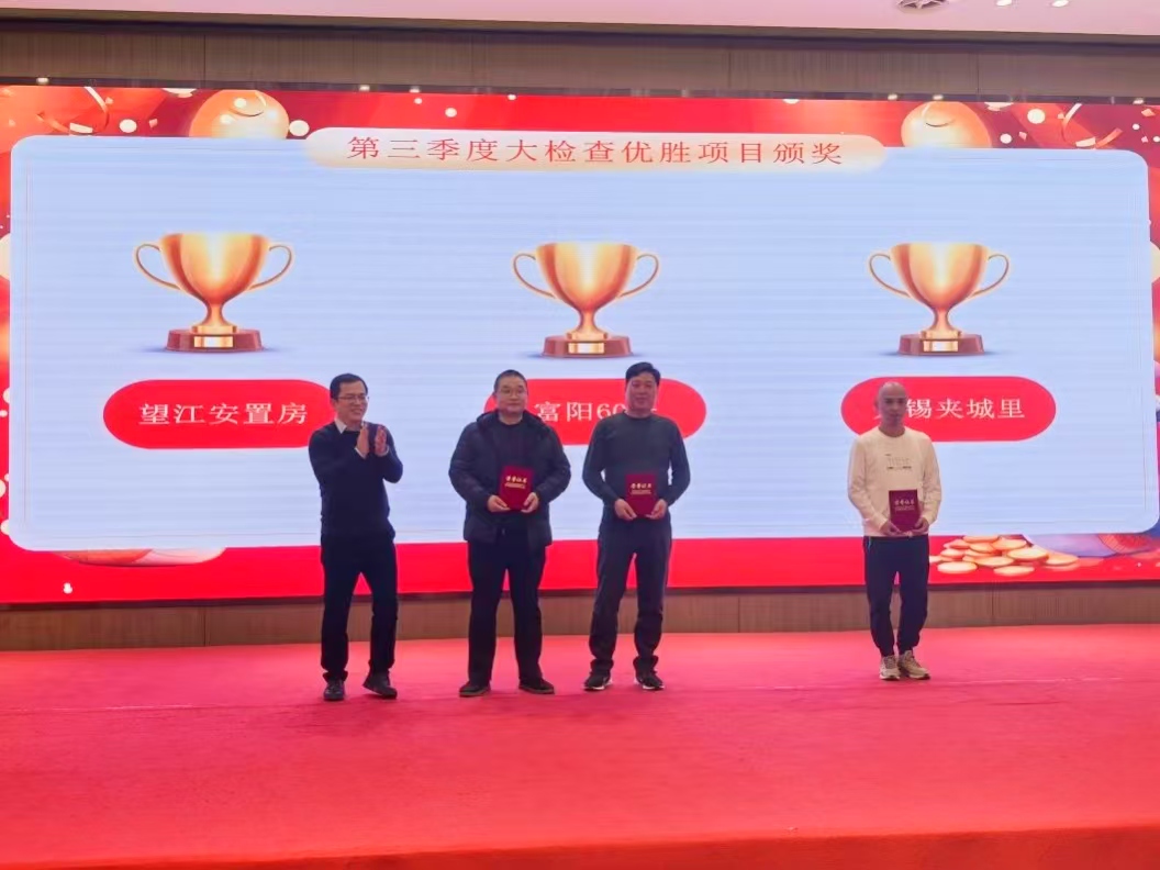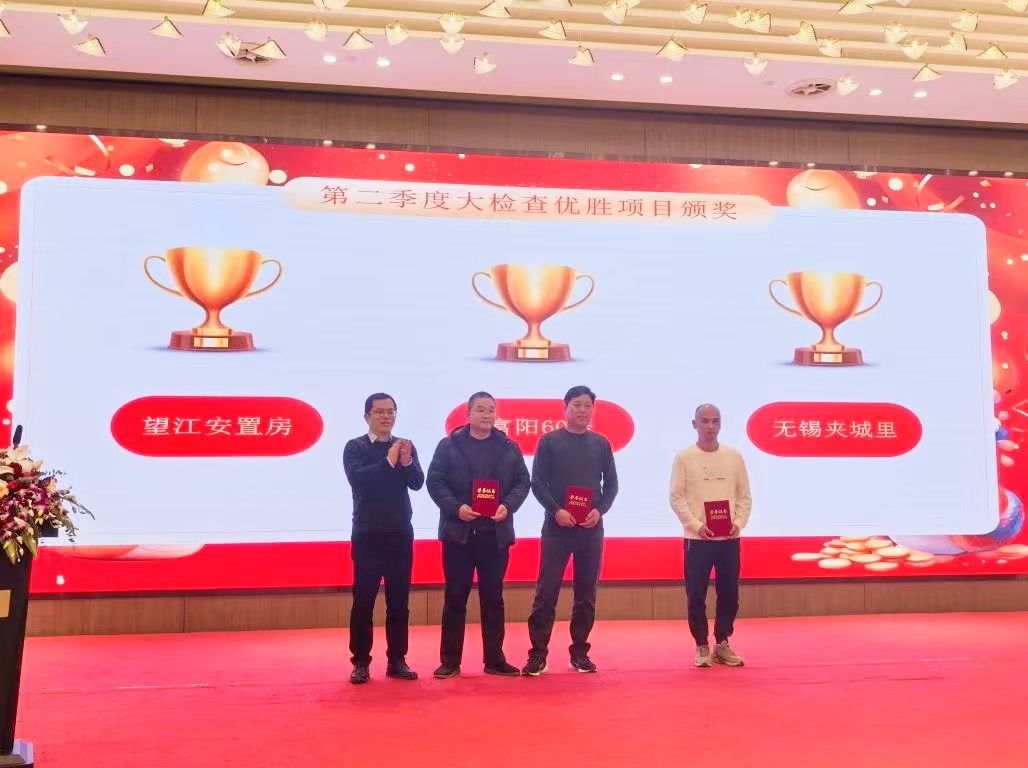 公司常务副总厉立强公布2024年公司第二、三、四季度项目大检查的前三名,并为优胜项目团队代表们颁奖。