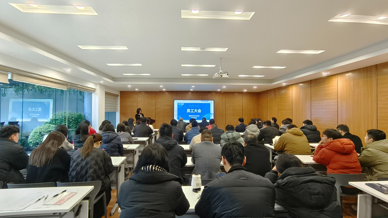 会议初始,公司常务副总经理厉立强高屋建瓴,为大家清晰勾勒了2025年度公司发展目标,主要包括经济指标、工程创优、行政管理与信息化建设等多个维度的目标。为实现这些目标,公司提出了三点倡议:全员投身业务开拓,全面提升工作效率,以及全方位实施成本控制。